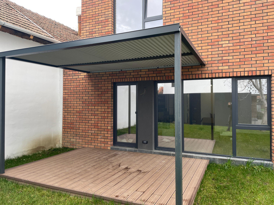 Propietatea ofera 110mp suprafata utila, terasa acoperita de 12mp in curte, inca o terasa circulabila de 31mp situata peste etajul 1, carport de 27mp si o curte libera de 100mp.