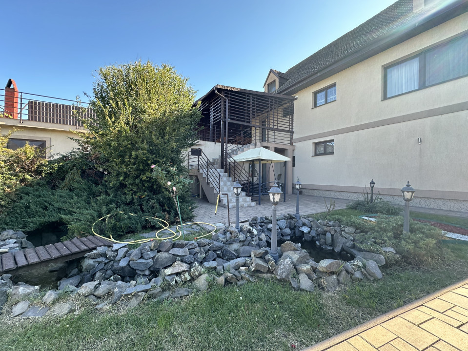 WestHub Imobiliare va propune spre inchiriere o casa individuala cu 9 camere, 300 mp utili, 1600 mp teren, garaj 40 mp, 2 terase, una de 35 mp, una suspendata de 40 mp.